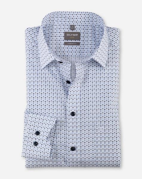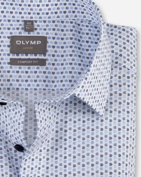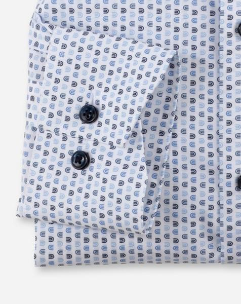 Smartes Minimal-Dessin in harmonischer Farbkomposition, der Frühling kann kommen. Der leichte Popeline aus feinen Baumwollgarnen macht dieses OLYMP Luxor zum Matchwinner im Office. Akzentuierung auf Bleu, smarter New Kent und angenehme Linienführung unterstützen die modische Performance. Zeitsparend pflege- und bügelleicht.