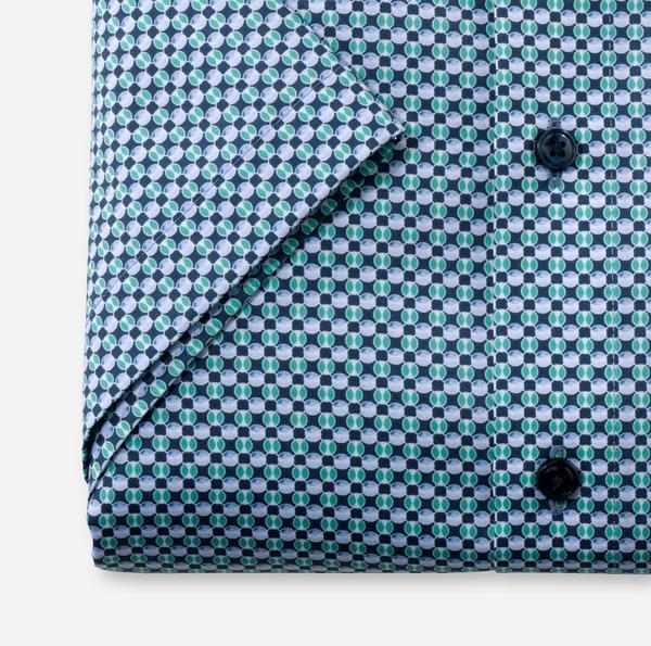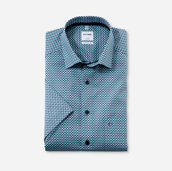 Lässigkeit und Seriosität – die Serie OLYMP Luxor comfort fit generiert mit grafischen Minimal-Dessins stilvolle und topmodische Business-Looks. Feine Baumwollgarne unterstreichen formstabil den maskulin geradlinigen Schnitt und begeistern durch ihren hautsympathischen, angenehmen Tragekomfort sowie zeitsparende Pflegeleichtigkeit. Die harmonische Farbkomposition des Musters sorgt stilvoll für den souveränen Auftritt. Einen besonderen modischen Akzent setzt der diskrete Under-Button-down-Kragen sowie ein attraktiver Uni-Kontrastbesatz. In luftiger Kurzarm-Version.