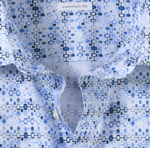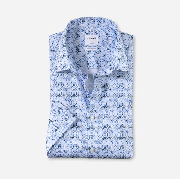 Die Kombination nachhaltiger Baumwollfasern, einzigartiger Dessins und eines angenehm geradlinigen Schnitts spielt die Hauptrolle in der Linie OLYMP Luxor comfort fit Kurzarm- Businesshemden. Die jahrzehntelange Expertise zeigt sich außerdem in den funktionellen Attributen, die dafür sorgen, dass die hoch entwickelten bügel- sowie knitterfreien Texturen allen Ansprüchen des heutigen Geschäftsalltags genügen. Das sympathische pixelscharfe Grafik-Allover lässt sich als individuelle Musterunterbrechung hervorragend zum Businessanzug kombinieren. Dank des eleganten New Kents punktet dieses Hemd auch als modisches Statement im Homeoffice. Ohne Brusttasche.