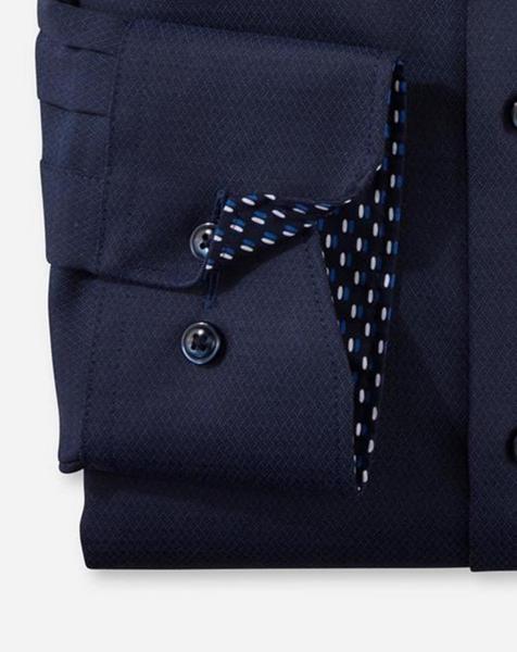 Als edler Allrounder empfiehlt sich dieses OLYMP Luxor in feiner, matt schimmernder Webstruktur und großer Uni-Farbauswahl. Elegantes Nachtblau, geradlinige Silhouette und vielseitiger New Kent stehen für den tadellosen Business-Look. Der kontrastive Innenbesatz setzt den wirkungsvollen modischen Akzent. Atmungsaktiv und hautsympathisch, pflege- und bügelleicht.