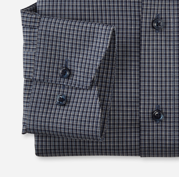 Kleine dezente Karos eignen sich hervorragend zur Musterunterbrechung des klassischen Business-Looks. Kombiniert mit einem smarten New Kent kann man(n) dank des souveränen Eindrucks ab und an auf die Krawatte verzichten. Die exzellenten Glättewerte der feinen Garnausspinnungen aus reiner, nachhaltig produzierter Baumwolle punkten mit hautsympathischem Tragekomfort ebenso wie mit zeitsparender Pflegeleichtigkeit. Die geradlinige Passform dieses OLYMP Luxor comfort fit Businesshemds sorgt für komfortablen Sitz.