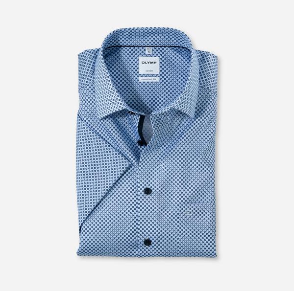 Dank des grafischen Dessins und ästhetisch herausgearbeiteter Detaillösungen ist dieses angenehm geschnittene OLYMP Luxor comfort fit Kurzarm-Businesshemd ein gern gesehener Geschäftspartner. Erstklassige Baumwolle, produziert mit der langjährigen Expertise eines Traditionsunternehmens, komfortable Passform und der smarte New Kent machen es zu einem eleganten Leistungsträger. Der kontrastive Besatz des Innenkragens vollendet das exklusive Gesamtbild mit einem attraktiven Akzent. Als zusätzlicher Bonus zum modischen Äußeren winkt die hohe Funktionalität dieses bügel- und knitterfreien sowie atmungsaktiven Outfits.