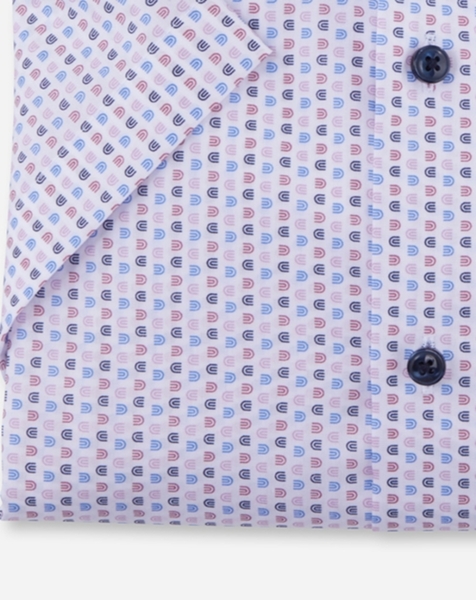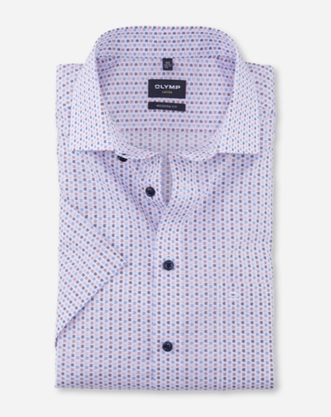 Smartes Minimal-Dessin in harmonischer Farbkomposition, der Frühling kann kommen. Der leichte Popeline aus feinen Baumwollgarnen macht dieses OLYMP Luxor Kurzarm-Hemd zum Matchwinner im Office. Akzentuierung auf Rosé, kosmopolitischer Global Kent und sportive Linienführung unterstützen die Performance. Zeitsparend pflege- und bügelleicht.
