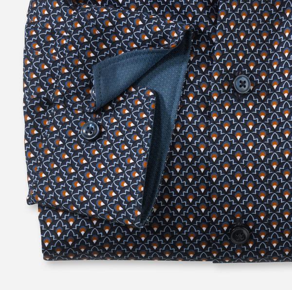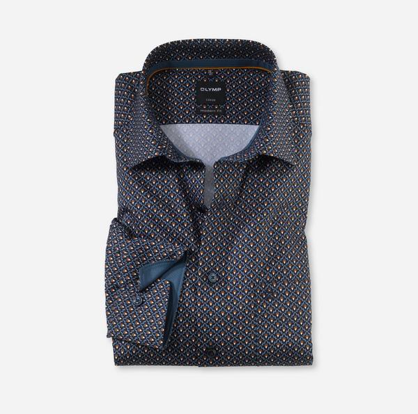Individualität und Seriosität – die Serie OLYMP Luxor modern fit generiert mit grafischen Minimal-Dessins und innovativer Digital-Print-Technologie für Textilien stilvolle und topmodische Business-Looks. Reine Baumwollgarne unterstreichen den leicht taillierten Schnitt und begeistern durch ihren hautsympathischen, angenehmen Tragekomfort, Formstabilität sowie zeitsparende Pflegeleichtigkeit. Das raffinierte Dessin sorgt eindrucksvoll für den souveränen Auftritt. Einen besonderen modischen Akzent setzt der diskrete Under-Button-down-Kragen sowie ein attraktiver Faux-Uni-Kontrastbesatz.