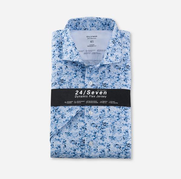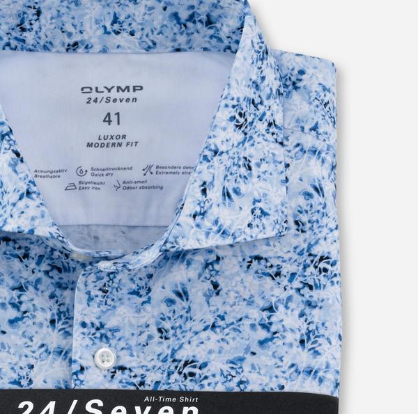 Wer denkt, dass Flower-Power im Business nichts zu suchen hat, täuscht sich gewaltig. Dieses OLYMP Luxor modern Fit in der 24/Seven Ausführung mit klassischem, aber softem Kent kombiniert entspannte Lässigkeit, persönlichen Style und inspirierende Kreativität wie kein anderes Businesshemd. Noch dazu garantiert es absolute Bewegungsfreiheit bei knitterfreier Formstabilität und lässt dadurch so manches traditionelle Businesshemd alt aussehen. Die innovative Dynamic-Flex-Jersey-Mischung mit Elasthanfasern ist atmungsaktiv, schnelltrocknend, bügelleicht und geruchsabsorbierend.