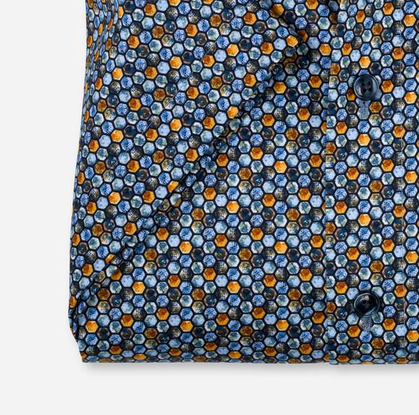 Grafische Formen aus der portugiesischen Mosaikkunst und kräftige Sommerfarben aus Brasilien haben das OLYMP Design-Team zu diesen Modellen inspiriert. Die bügel- und knitterfreien OLYMP Luxor modern fit Businesshemden aus reiner, glatter Baumwolltextur präsentieren sich in raffinierten farblichen Verbindungen und lebendigen Mustern. Unterstrichen wird der attraktive Look durch einen kosmopolitischen Global Kent und die dynamische Silhouette, zu deren Gunsten auf eine Brusttasche verzichtet wurde. In luftiger Kurzarm-Ausführung.