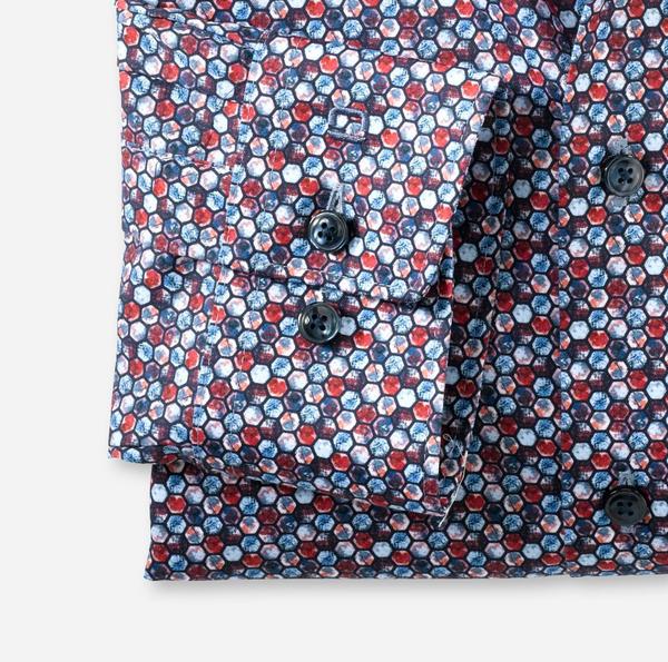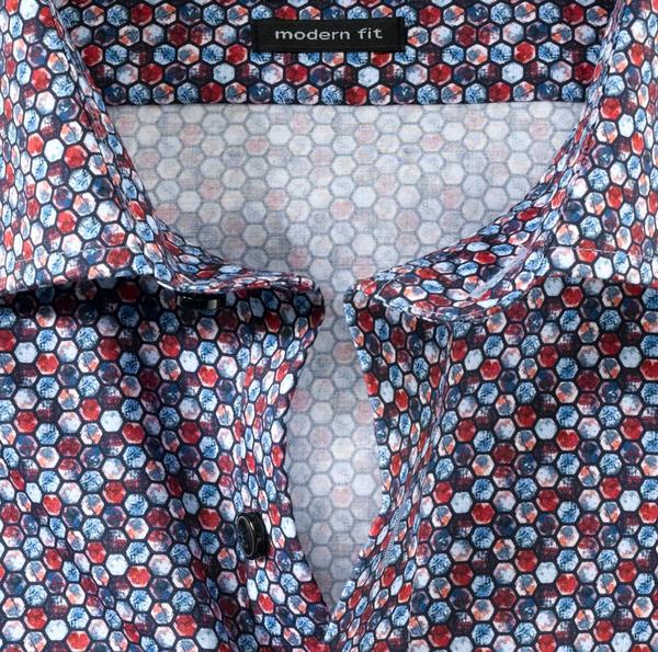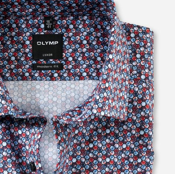 Grafische Formen aus der portugiesischen Mosaikkunst und kräftige Sommerfarben aus Brasilien haben das OLYMP Design-Team zu diesen Modellen inspiriert. Die bügel- und knitterfreien OLYMP Luxor modern fit Businesshemden aus reiner, glatter Baumwolltextur präsentieren sich in raffinierten farblichen Verbindungen und lebendigen Mustern. Unterstrichen wird der attraktive Look durch einen kosmopolitischen Global Kent und die dynamische Silhouette, zu deren Gunsten auf eine Brusttasche verzichtet wurde.