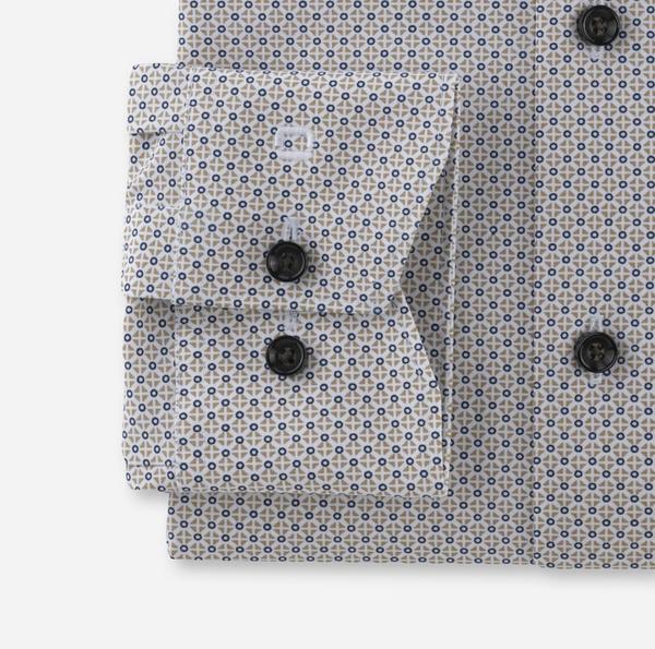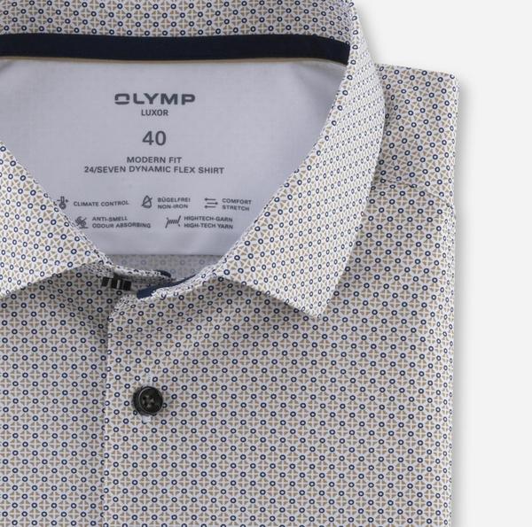 High-Tech-Fasern sind der nächste evolutionäre Sprung in der Linie OLYMP Luxor 24/Seven modern fit. Die Dynamic-Flex-Jersey-Attribute Atmungsaktivität, Bügelleichtigkeit und schnelle Trocknung werden funktional ergänzt. CLIMATE CONTROL heißt die innovative Fasermischung aus Baumwolle, Polyester und Elasthan. Sie ist zusätzlich feuchtigkeits- sowie temperaturregulierend und bewältigt jede Klimazone und bleibt auch bei höchster Beanspruchung cool, hautsympathisch und extrem formstabil. Noch kurz: Smarter Minimal-Print, körpernahe Silhouette, Modern Kent, ohne Brusttasche.