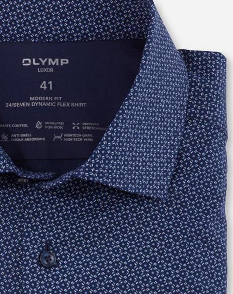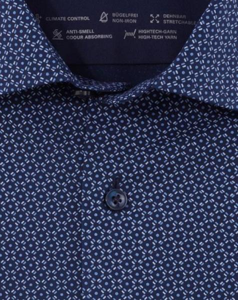 Mit innovativen CLIMATE-CONTROL-Garnen überzeugt das OLYMP Luxor 24/Seven Businesshemd durch atmungsaktive, elastische, pflegeleichte sowie temperatur- und feuchtigkeitsregulierende Funktionalität. Der grafische Print mit Akzentuierung auf Marine, die körpernahe Silhouette und ein kosmopolitischer Global Kent vollenden die modische Performance. Sportiv, ohne Brusttasche.