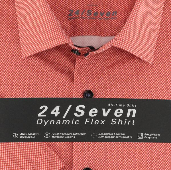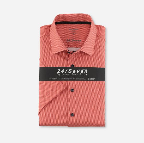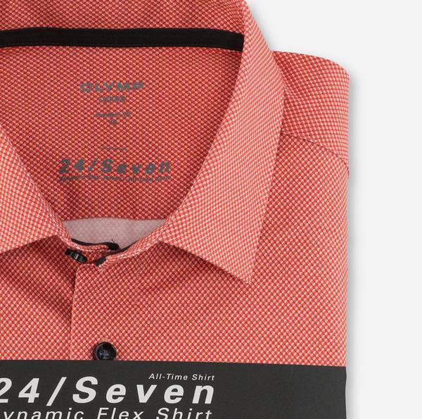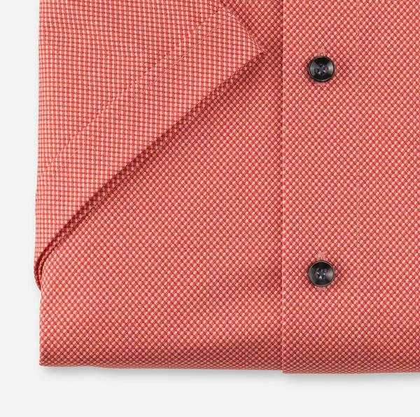 Casual-Lässigkeit und Business-Seriosität – das 24/Seven-Jersey-Langarmhemd mit kurzem Arm erweitert die Serie OLYMP Luxor modern fit um eine besonders stylische Variante. Feine Baumwollgarne erhalten in der Mischung mit Elasthanfasern eine unvergleichbar lässige, fein strukturierte und dynamische Textur. Sie unterstreichen formstabil den leicht taillierten Schnitt und begeistern durch ihren hautsympathischen, angenehmen Tragekomfort sowie zeitsparende Pflegeleichtigkeit. Die breite Farbpalette mit intensiven, modischen Tönen und ein eleganter New Kent sorgen ganz relaxed für den souveränen Auftritt. Mit attraktivem Kontrastbesatz, ohne Brusttasche.