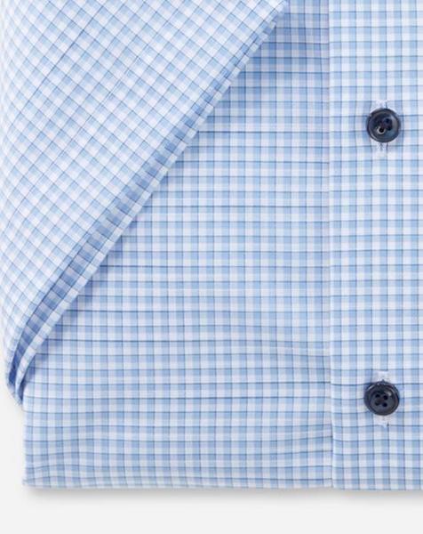 Unverzichtbar im modernen Business-Outfit: OLYMP Luxor modern fit überzeugt nicht nur durch jahrelang gewachsene Herrenausstatter-Expertise, sondern auch mit angesagtem Design und geschmackvoll inszenierten Details, wie zum Beispiel kontrastiven Knöpfen oder Trims. Dezentes tonales Karo, körperbetonte Silhouette und dazu bestens harmonierender Button-down vollenden den standesgemäßen Look. Fein gewebte Baumwollfasern überzeugen mit hautsympathischem Tragekomfort und zeitsparendem Handling beim Pflegen und Bügeln. In luftiger Kurzarmversion und inspirierendem Bleu.