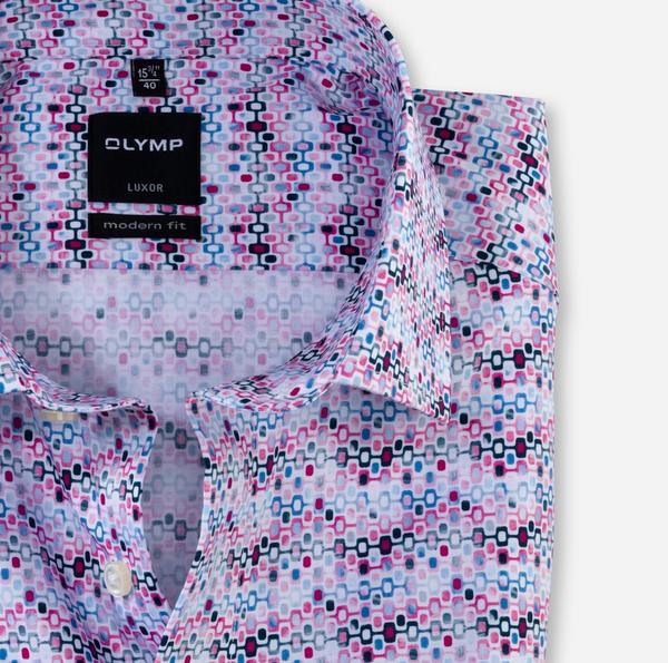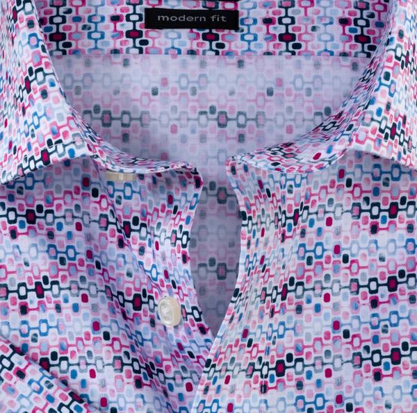 Die Kombination nachhaltiger Baumwollfasern, einzigartiger Dessins und des attraktiv körperbetonten Schnitts spielt die Hauptrolle in der Linie OLYMP Luxor modern fit Kurzarm-Businesshemden. Die jahrzehntelange Expertise zeigt sich außerdem in den funktionellen Attributen, die dafür sorgen, dass die hoch entwickelten bügel- sowie knitterfreien Texturen allen Ansprüchen des heutigen Geschäftsalltags genügen. Das sympathische pixelscharfe Grafik-Allover lässt sich als individuelle Musterunterbrechung hervorragend zum Businessanzug kombinieren. Dank des weltoffenen Global Kents punktet dieses Hemd auch als modisches Statement im Homeoffice. Ohne Brusttasche.