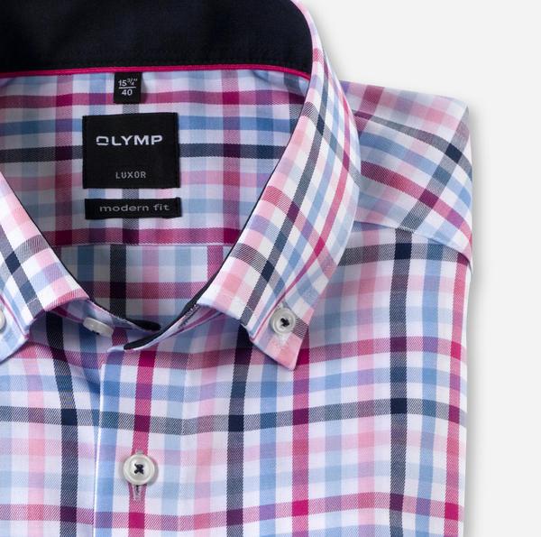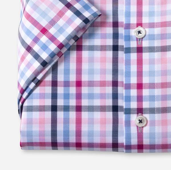 Harmonisch abgestimmte Checks ergänzen die neu OLYMP Luxor modern fit Kurzarm-Kollektion mit frischen Farbstellungen. Sie unterbrechen das normale Business-Outfit auf wohltuende Weise, strahlen Teamgeist aus und unterstreichen die attraktive Performance mit körpernaher Silhouette und dazu passendem sportiven Button-down-Kragen. Die charakteristisch diagonale Twill-Struktur aus reiner zertifizierter Baumwolle überzeugt außerdem mit exzellenten Glättewerten, Strapazierfähigkeit, hohem Tragekomfort und zeitsparender Pflegeleichtigkeit.