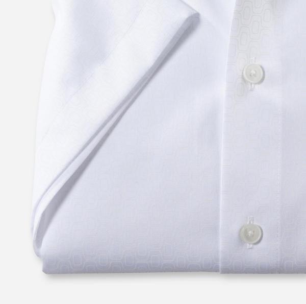 Ein edles modisches Statement mit distinguiertem 70s Appeal und Dresscode-Farben Weiß und Marineblau – dieses unifarbige OLYMP Luxor modern fit präsentiert sich in körpernaher Silhouette, kosmopolitischem Global Kent und leicht changierendem tonalen Webmuster. Die feinen Baumwollgarne sorgen mit exzellenten Glättewerten für ein ausnehmend gutes Tragegefühl gerade bei sommerlichen Temperaturen, außerdem garantieren sie zeitsparende Pflegeleichtigkeit und Bügelfreiheit. In sommerlich luftiger Kurzarm-Version.