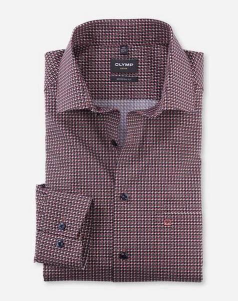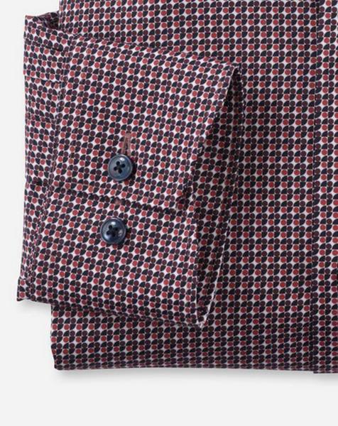 Das körpernah geschnittene OLYMP Luxor Businesshemd aus feinen Baumwollgarnen überzeugt als sportlich-eleganter Allrounder. Das wirkungsvolle Minimal-Dessin mit Akzent auf Dunkelrot und der kosmopolitische Global Kent unterstreichen die souveräne Performance. Das glatte Gewebe ist knitterfrei und bügelleicht. 'Einfach waschen, trocknen, anziehen' ist die bewährte und zeitsparende Devise von OLYMP.