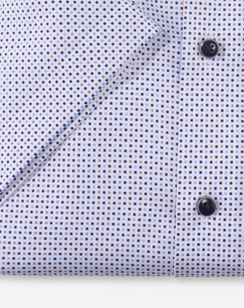 OLYMP Luxor modern fit, das leichte Kurzarm-Businesshemd in charmantem Frühlings- und Sommer-Look. Dynamisch, körpernah tailliert mit dem dazu perfekt harmonierenden Global Kent ausgestattet, sorgt es für die sportlich-elegante Performance im Job. Das klassische Dot-Dessin, diesmal in Micro-Quadraten und dreifarbiger Ausführung lässt sich in der Akzentuierung auf dezente Naturtöne wunderbar kombinieren. Die matt schimmernde Popelin-Textur mit feinem Griff wurde aus reiner Baumwolle gewebt. Wie gewohnt pflegeleicht und knitterfrei.