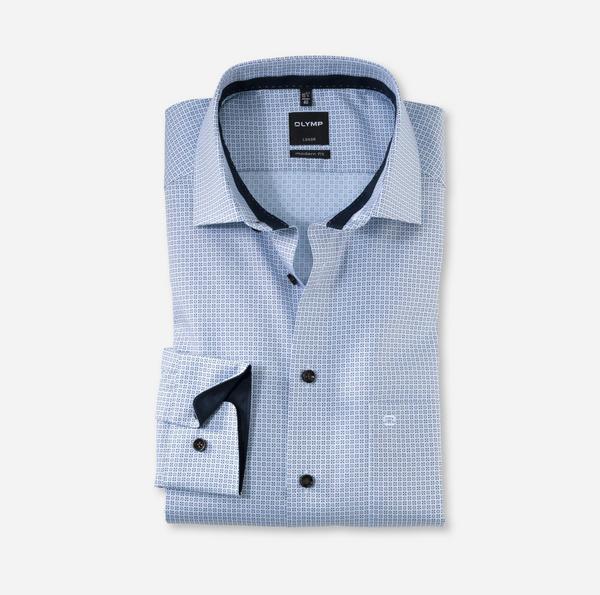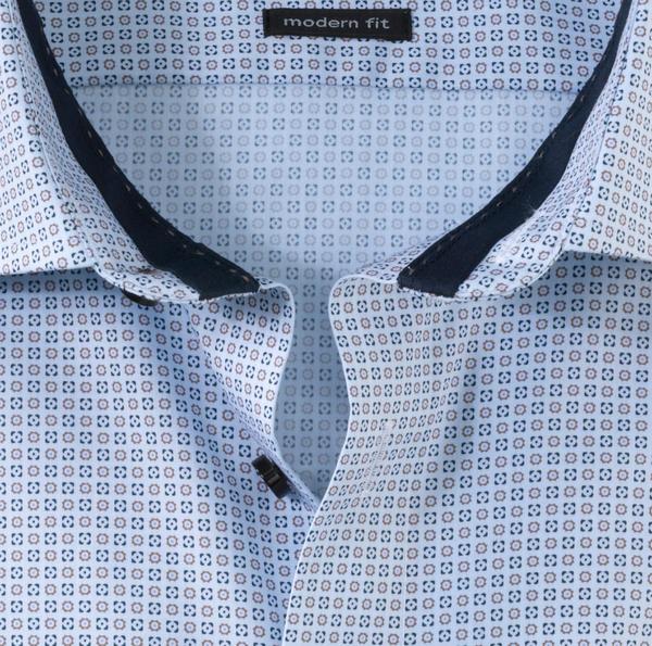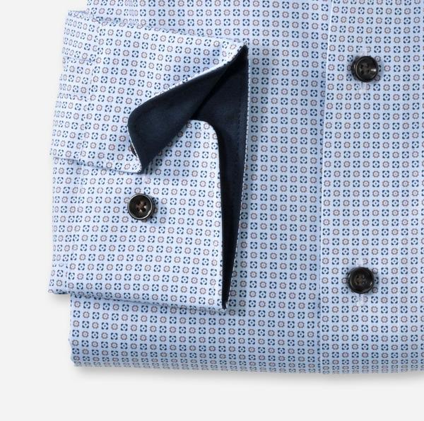 Reine, nachhaltig produzierte Baumwollfasern, pixelscharfer Digital-Print in innovativem Minimal-Dessin und attraktiver, leicht taillierter Linienführung erregen Aufmerksamkeit. Die raffinierte Farb- und Musterkomposition dieses OLYMP Luxor modern fit Businesshemds und der dynamisch-elegante Global Kent spielen perfekt zusammen und setzen ein individuelles Statement im Geschäftsalltag. Wie gewohnt pflegeleicht und knitterfrei. Mit kontrastierendem Uni-Besatz der Krageninnenseite.
