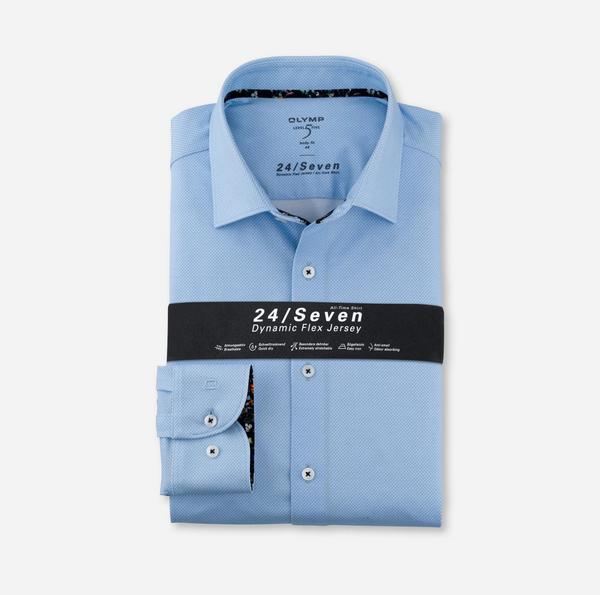 Freizeit-Feeling trifft Business-Look: Dieses coole 24/Seven der Produktlinie OLYMP Level Five body fit ist praktisch die materialisierte Work-Life-Balance! Der modisch elegante All-Time-Jersey mit Schaftmuster in klassischem uni begeistert durch seinen hochelastischen Tragekomfort, geschnitten in körpernaher Body-Fit-Silhouette. So entsteht ein vielseitiger, wandlungsfähiger Allrounder, der vom Meeting bis zum Business-Lunch und späteren Sundowner stilsicher überzeugt.