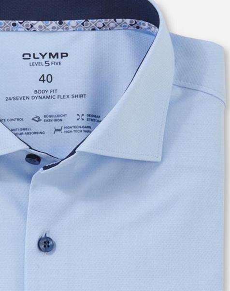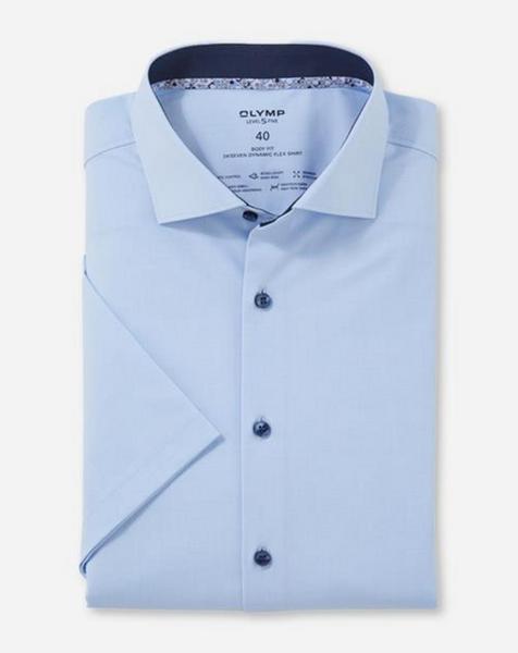 Innovativ plus multifunktional plus hautsympathisch plus körperbetont: das kurzärmlige OLYMP Level Five Smart Casual 24/Seven Dynamic-Flex-Shirt. Eine meisterliche Synthese aus anspruchsvoller Business- und sportlich-lässiger Casualmode. Die neuentwickelte softe, fein strukturierte Climate-Control-Textur aus Baumwolle-, Polyester- und Elasthangarnen punktet neben den bewährten Materialeigenschaften zusätzlich mit Feuchtigkeits- und Temperaturregulierung. Hightech, kühlend, cool und in Bleu.