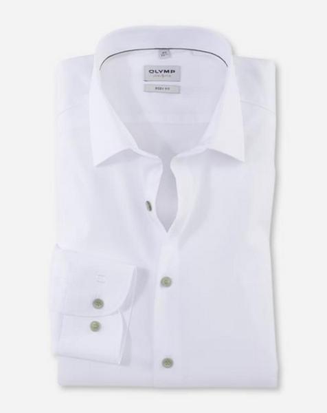 Besondere Anlässe erfordern ein besonderes Hemd. Das OLYMP Level Five body fit Hochzeitshemd für Bräutigam und Eingeladene präsentiert sich in strahlend weißem Baumwollpopeline, akzentuiert durch Kontrastknöpfe in Kitt. Farblich perfekt darauf abgestimmte Krawatten und Schleifen sind Teil der aktuellen OLYMP Kollektion. Mit New York Kent.