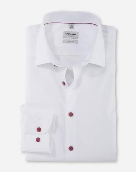 Besondere Anlässe erfordern ein besonderes Hemd. Das OLYMP Level Five body fit Hochzeitshemd für Bräutigam und Eingeladene präsentiert sich in strahlend weißem Baumwollpopeline, akzentuiert durch Kontrastknöpfe in Mauve. Farblich perfekt darauf abgestimmte Krawatten und Schleifen sind Teil der aktuellen OLYMP Kollektion. Mit New York Kent.