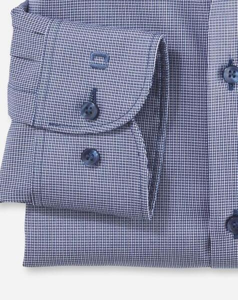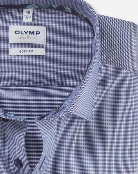 Elegantes uni, feines Strukturgewebe und ein maskulin taillierter Body Fit: Mit diesem Level Five präsentiert OLYMP einen zuverlässigen Businessklassiker in vielseitigem Marine. Der Frühlingskollektion entsprechend wurde ein leichtes Baumwollgewebe verarbeitet, als bequemer COMFORT STRETCH auf hochwertigem GREEN-CHOICE-Niveau. Ob im Office oder Afterwork, mit einfarbiger Krawatte, gemusterter Fliege oder ganz ohne Kragenschmuck getragen – dieser smarte Allrounder passt! Akzentuiert durch einen modischen New York Kent. Sieht einfach gut aus.