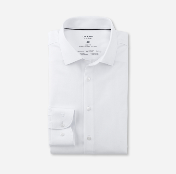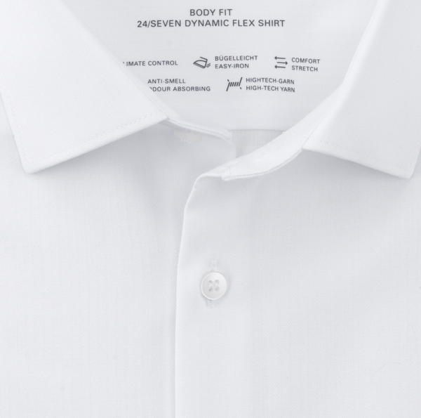 Mit diesem innovativen OLYMP Level Five präsentiert sich ein uni-Klassiker für alle Männer, die gerne etwas bewegen. Für eine Top-Performance bei zugleich einwandfreier Seriosität wurden ausgewählte Hightech-Garne zu einem hoch funktionellen Gewebe verarbeitet, mit Comfort-Stretch-, Anti-Smell- und CLIMATE-CONTROL-Eigenschaften. Der leichte Popeline liegt angenehm auf der Haut und wurde im schmaler Body Fit geschnitten. Ein bestechender Business-Begleiter der Linie OLYMP 24/Seven Dynamic Flex Shirt, akzentuiert durch einen New York Kent.