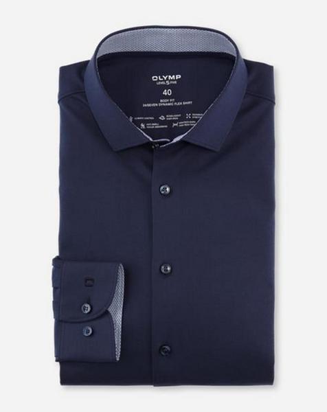 Frische Energie fürs Office mit edlem, tonalen Webmuster in Nachtblau und energievoller Linienführung. Das OLYMP Level Five Dynamic Flex Shirt überzeugt mit hautsympathischer und gleichzeitig funktionaler Textur. Es ist soft, atmungsaktiv, feuchtigkeits- und temperaturregulierend. Die CLIMATE-CONTROL-Funktion sorgt außerdem für zeitsparende Pflege- und Bügelleichtigkeit. Sportiver Modern Kent, modisch akzentuiert mit kontrastivem Trim.
