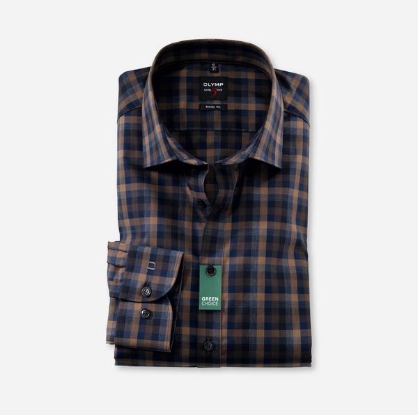 Das Bestreben, aus Tönen, Akzenten, Kontrapunkten und Web-Strukturen Einmaliges zu komponieren, zeichnet das aktuelle Design der OLYMP Level Five body fit Hemden aus. Sie repräsentieren einen zeitgemäßen Business-Style in höchster Verarbeitungsqualität und körperbetonter Form. Feine Garn-Ausspinnungen und spezielle Veredelungsverfahren verleihen dem Produkt aus reiner Baumwolle seine lässige Optik, die aufwändigen Details der traditionellen Herrenausstattung den unvergleichlichen Charakter. Der jugendliche New York Kent vollendet den Look und harmoniert perfekt zur dynamischen Linienführung in sportivem Karo. Ein individuelles Statement im Geschäftsleben.