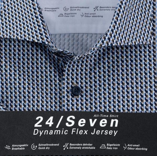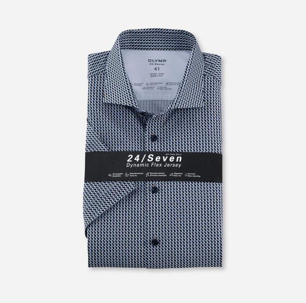 Als perfekte Einheit aus Dessin, Material und Schnittführung überzeugt dieses stylishe OLYMP Level Five Kurzarmhemd mit coolem Retro-Print. Der vielfach beliebte 24/Seven Dynamic Flex Jersey begeistert hier durch eine leichte, glatte Baumwollqualität, gefertigt nach hochwertigen GREEN CHOICE Standards. Ein hoher Stretch-Anteil sorgt dabei trotz schmaler Body-Fit-Silhouette für vollen Bewegungsradius. Ein rundum gelungener Allrounder für Business und Freizeit, ausgestattet mit elegantem Kent.