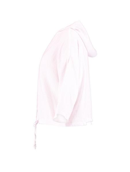 Leichte Bluse mit Kapuze und vorderer Knopfleiste. Gekrempelte 3/4 Ärmel und Kordelzug im Saum.