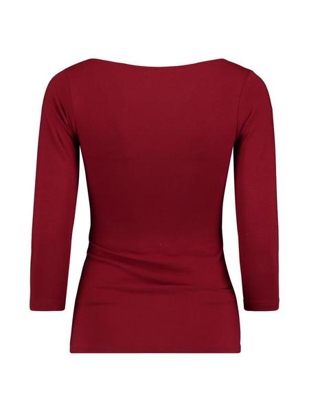 3/4-Arm Shirt mit leichtem V-Ausschnitt. Die Passform des unifarbenden Shirts ist schmal.