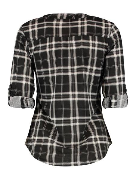 Karrierte Bluse mit sehr weichem Griff und Serafino Kragenlösung. Mir Roll uu Ärmeldetai und abgerundetem Saum
