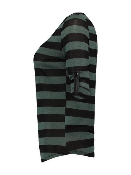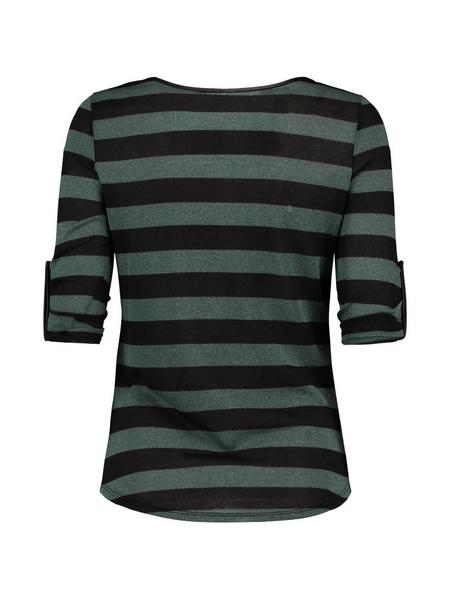 Leichter 3/4-Arm Pullover zum Krempeln, mit Knöpfen zur Befestigung. Rundhals-Ausschnitt mit Streifen-Optik.