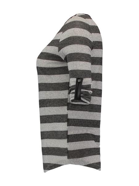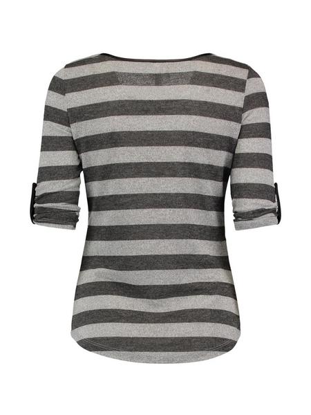 Leichter 3/4-Arm Pullover zum Krempeln, mit Knöpfen zur Befestigung. Rundhals-Ausschnitt mit Streifen-Optik.