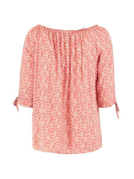 Leichte Bluse mit 3/4-Ärmeln und Bändern am Ärmel. Der Schnitt ist eher locker. Ausschnitt mit Gummibund. Offshoulder oder Rundhalsausschnitt möglich. All-Over-Print.