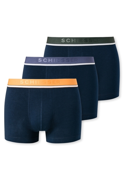 Make your Move: Diese dunkelblauen, eng anliegenden Shorts aus der "95/5"-Serie vereinen all das, was Mann braucht: Im praktischen Dreierpack begeistern die Unterhosen mit einem sportlichen Logo-Webgummibund in Gelb, Jeansblau und Dunkelgrün. Das Material aus 95% nachhaltigem Organic Cotton und 5% Elastan fühlt sich besonders angenehm auf der Haut an und bleibt auch nach vielen Waschgängen in Topform. Ideal für Herren, die preisattraktive Tagwäsche in natürlicher SCHIESSER-Qualität schätzen!