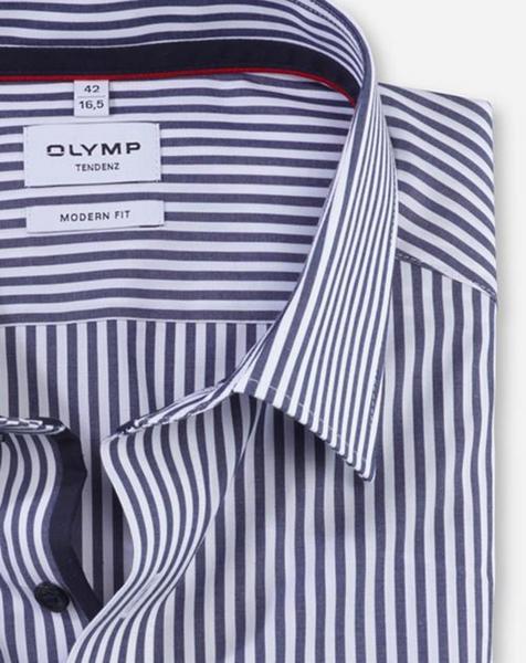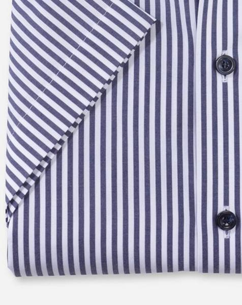 Streifen machen schlank. Modisches Mogeln ist nicht nötig, denn die leicht taillierten, körpernah geschnittenen OLYMP Tendenz Businesshemden mit smartem New Kent sind speziell für die sportaffine junge Zielgruppe designed. Klassische Römerstreifen-Dessins erfreuen sich äußerster Beliebtheit, sie stehen für den standesgemäßen Look und die individuelle Note. Dieses Kurzarm-Shirt aus reiner Baumwolle in Marine auf Weiß begeistert zudem durch ein überraschendes Preis-Leistungs-Verhältnis im Business-Segment.