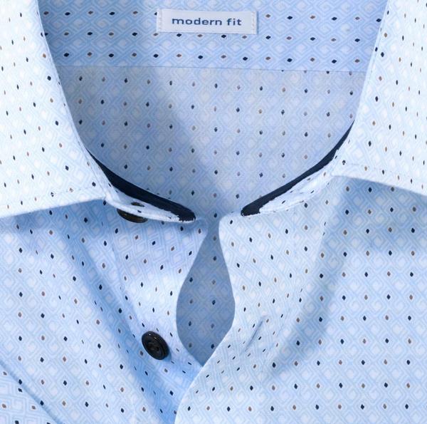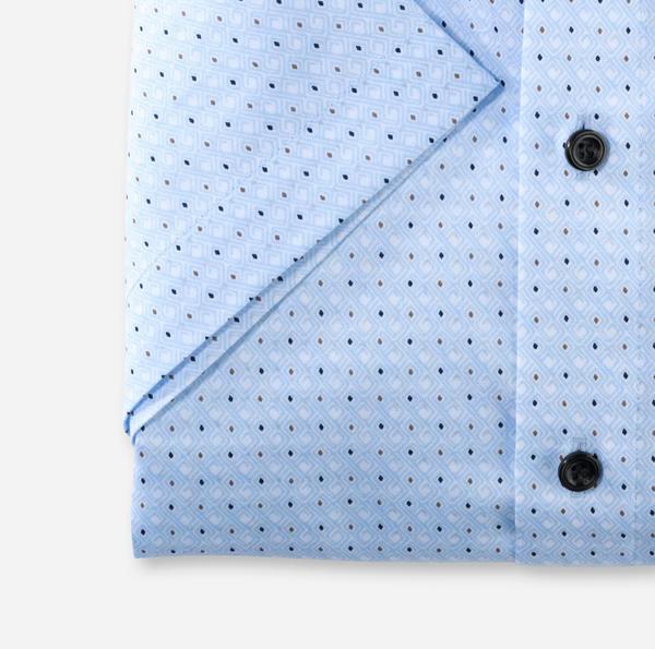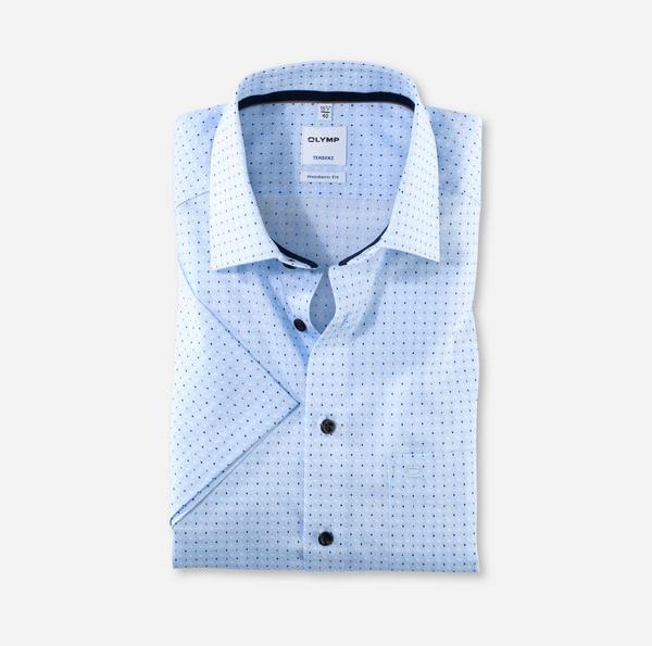 Fantasievolle und kreative Minimal-Dessins durchbrechen allzu starre Vorstellungen heutiger Businessmode. Balanciert wird die individuelle Musterunterbrechung mit hervorragendem Preis-Leistungs-Verhältnis durch die ebenfalls selbstverständlich hochwertige Verarbeitung im jungen OLYMP Business-Segment Tendenz modern fit. Perfekt, um in die Geschäftswelt zu starten. Leicht taillierte sportive Silhouette, vielseitiger New Kent und hautsympathischer Tragekomfort durch nachhaltige Produktion. Style und Statement, die zusammen passen. Sommerlich luftig mit kurzem Arm.
