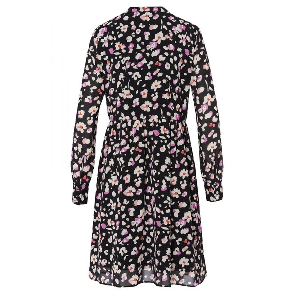 Das moderne Chiffonkleid von MORE & MORE mit neuem Leo-Flower-Print auf schwarzem Fond kann elegant mit Heels und Clutch getragen werden, sieht aber auch mit Strickmantel und Boots sehr cool aus.