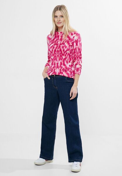Dieses Shirt aus Baumwolle von CECIL ist ein vielseitiges Piece mit gerafftem 3/4 Arm und einem Stehkragen, der mit einem Tunnelzug verziert ist. Es zeichnet sich durch ein ansprechendes mehrfarbiges Muster aus und bietet sowohl Komfort als auch vielseitige Kombinationsmöglichkeiten. Mit diesem Shirt können Damen stilvolle Outfits für verschiedene Anlässe kreieren.