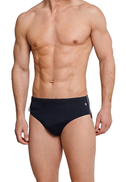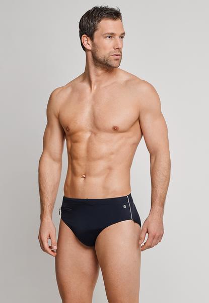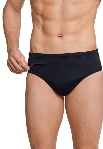 Klassische Bademode mit Raffinessen: Dieser schwarze Herren-Badeslip aus der SCHIESSER-Kollektion "Aqua" überzeugt durch ein maskulines Design und praktische Details. Eine kleine Tasche mit Reißverschluss schenkt dem Bade-Sir ein schönes Extra, in dem Kleingeld oder ein Schlüssel sicher verstaut werden können. In elastischer, formbeständiger Wirkware kann die Badehose auf ganzer Linie mit bester, perfekt sitzender SCHIESSER-Qualität punkten.