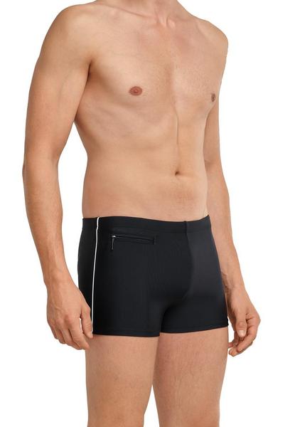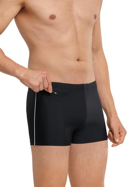 Diese körpernahen Herren-Badeshorts aus der SCHIESSER-Kollektion "Aqua" überzeugen nicht nur mit einer optimalen Passform, sondern sind mit praktischen Details ein wahres Multitalent: In einer extra Reißverschlusstasche können Kleingeld oder ein Schlüssel sicher verstaut werden. Das Material aus recycelter Wirkware ist besonders formbeständig und fühlt sich angenehm weich auf der Haut an - perfekt sitzend in bester SCHIESSER-Qualität.