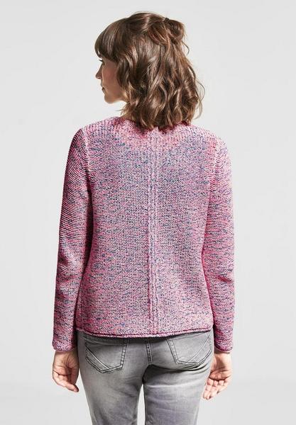 Für sportliche Looks: einfach diese Strickjacke kombinieren. Das mehrfarbige Bändchengarn sorgt dabei für tolle Farbhighlights und der Rücken wird durch den Struktur-Streifen betont. Abgerundet wird das Design durch die Rollkante am Saum. Perfekt zu schlichten Denim-Looks!\n\n\n Zweifarbiger Bändchengarn\n Offene Kanten\n Rollkanten am Saum\n Maße bei EU-Größe XS ca.:\n Länge 58cm, Breite 50cm, Taille 50cm\n Material: 58% Baumwolle, 42% Polyester\n\n