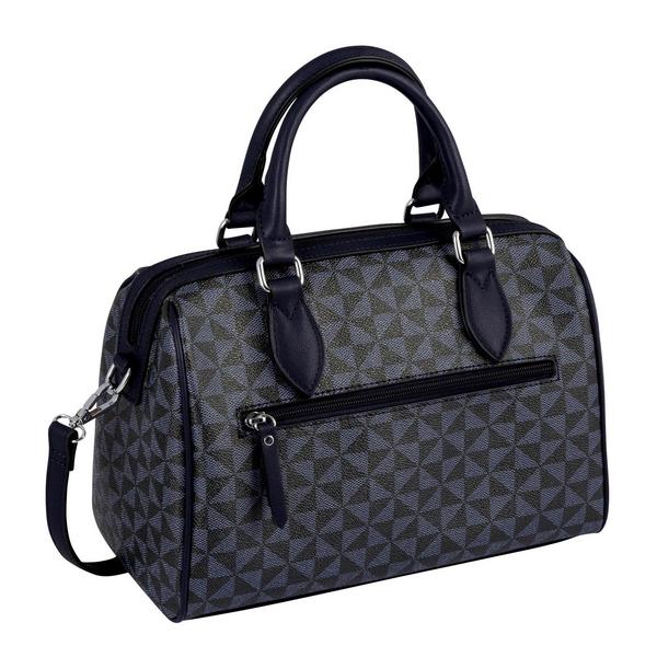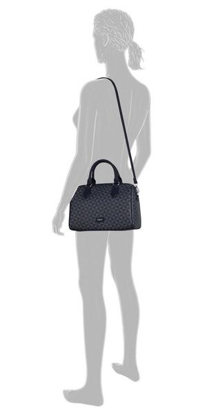 Eine Bowling bag, die bereits einen Ehrenplatz unter den It-Designs der Saison hat. Aus Lederimitat mit charakteristischem grafischem All-over-Print, langem abnehmbarem verstellbarem Schulterriemen sowie Details in Glattlederoptik und vorderseitigem Metall-Logoschriftzug repräsentiert diese Handtasche eine Essenz von Coolness und Funktionalität, die Sie an Ihren geschäftigsten Tagen mit urban-schicker Anmutung begleiten wird. Zu der Tasche sind auch zwei attraktive Börsen erhältlich. Bowling bag mit Reißverschlussöffnung, 1 Reißverschlussrückfach, innen 1 Mittelfach mit Reißverschlussöffnung, 1 Reißverschlussfach, 1 Smartphonefach und 1 Steckfach, 2 kurze Rundhenkel, 1 langer verstellbarer Schulterriemen – abnehmbar. Maße in cm: 30x16x20