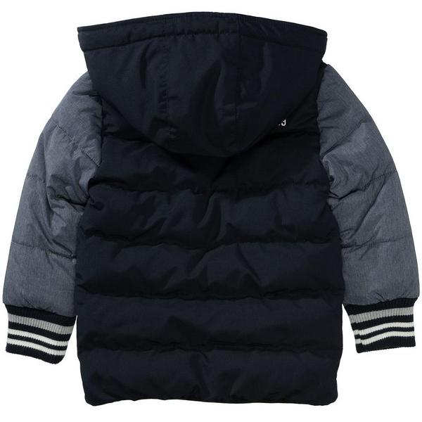 Warm und trendy durch die kalte Jahreszeit: Mit dieser gefütterten Jacke von BASEFIELD kommt Ihr Junior optimal geschützt durch seinen Alltag. Die Jacke ist mit einem weichen Innenfutter und einer wärmenden Füllung versehen und hält dadurch angenehm warm. Eine gefütterte Kapuze und die Rippbündchen sorgen zusätzlich für hervorragenden Tragekomfort. Optisch punktet das Modell durch eine stylische Loop-Embroidery-Applikation und eine Wording-Stickerei im Brustbereich. Details: hochabschließender Kragen, abnehmbare Kapuze, schließt mit Reißverschluss, seitliche Eingrifftaschen, Rippbündchen an Ärmeln und Stehkragen, komplett gefüttert, Wording-Stickerei auf der Rückseite, gesteppte Qualität.