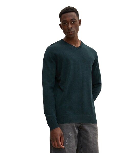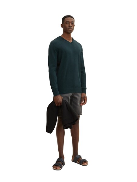basic v-neck sweater - 13159/Dark Gable Green Mela