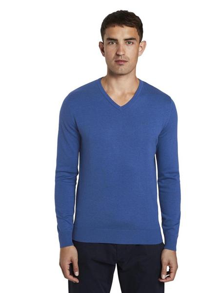 basic v neck sweater - 24248/bright blue melange