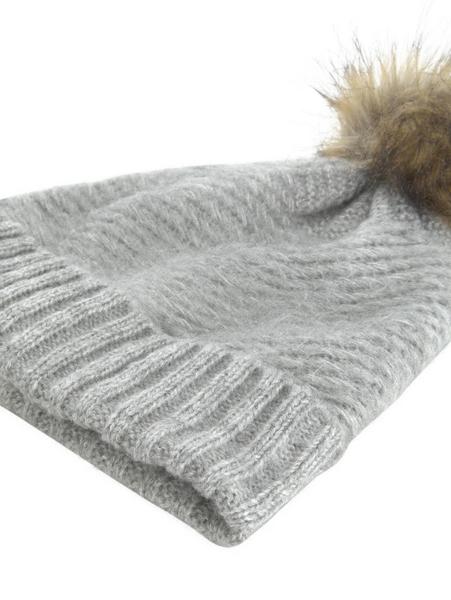 beanie with fake fur pompom - 10367/Light Silver G Artikel-Nr.: 1015591