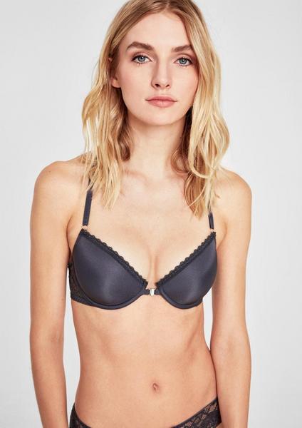 Rückenteil und Cup-Kante aus floraler Spitze, glänzender Klipp-Verschluss vorne, vorgeformte, leicht wattierte Cup-Schalen mit stabilisierenden Bügeln für den perfekten Sitz, glatte, nicht abzeichnende Cups, hochwertige, elastische Micro Touch-Ware